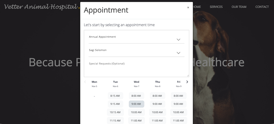 Offer clients the convenience of booking online We’re excited to announce the newest addition to our suite of business tools for veterinarians - online appointment booking. Booking appointments online has become routine in every aspect of our lives -